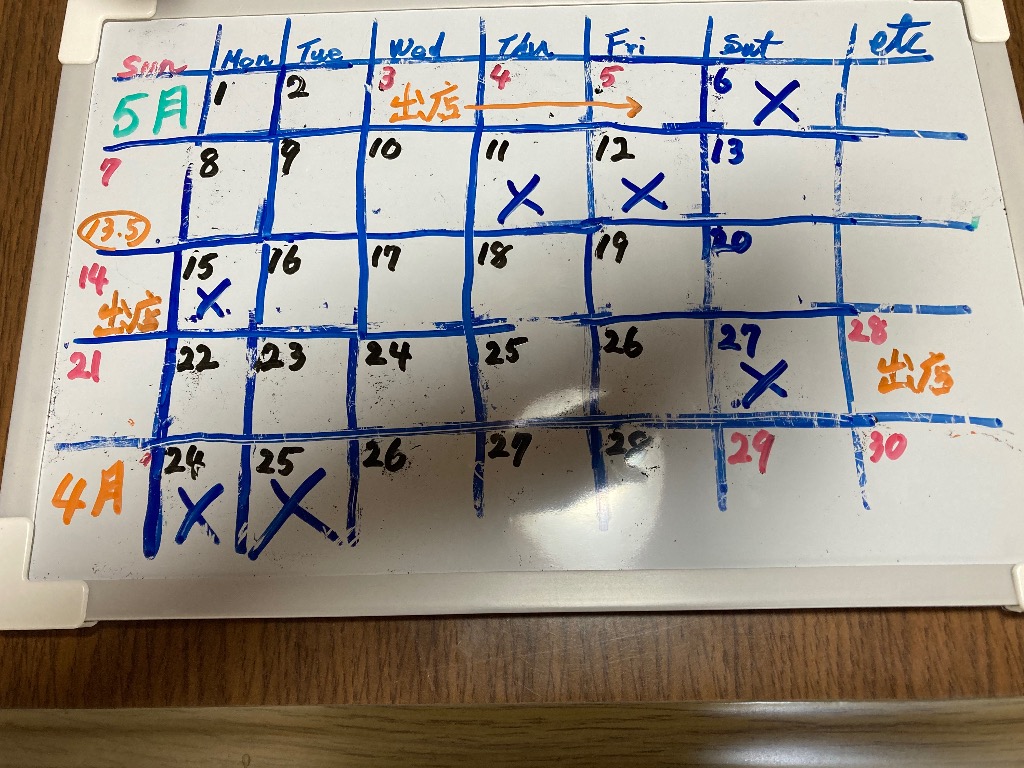 こちらで簡単にざっくりとした出店、お休み予定のご案内をさせて頂きます!