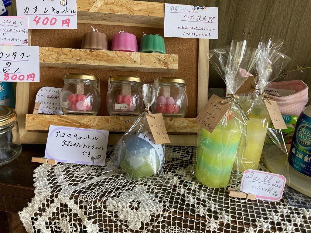 新作ミツロウキャンドルと、訳ありのお値下げ品を中心に置かせていただいてますが、